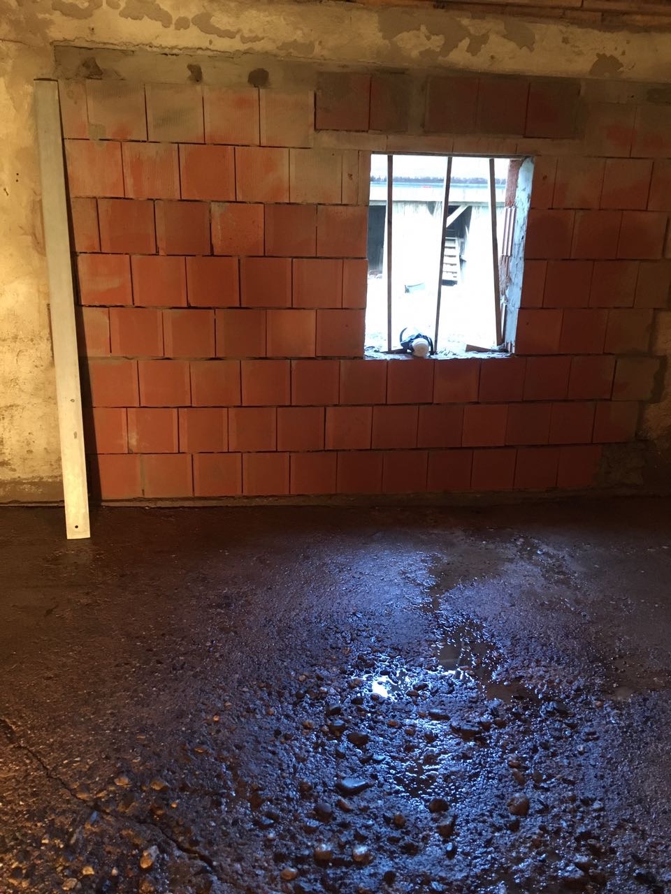 Das Tor wurde zugemauert und das Fenster aus Brandschutzgründen versetzt. Der Kamindeckendurchgang ausbetoniert. Decke abhängen, doppelte GKP-Beplankung und vorher natürlich eine gründliche Reinigung des Bodens wurde durchgeführt.